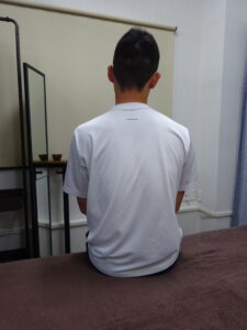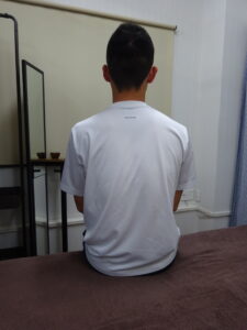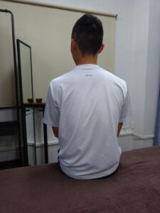 <治療前>左首の痛みでほぼ後ろに倒すことが出来ない