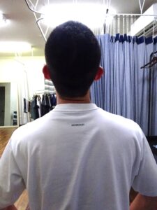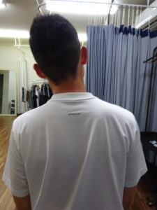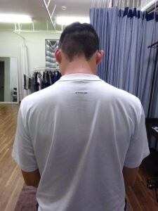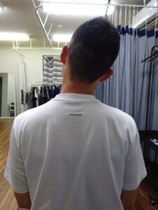 <治療前>右に振り向くとこの位置で左首が痛くてこれ以上振り向けない