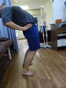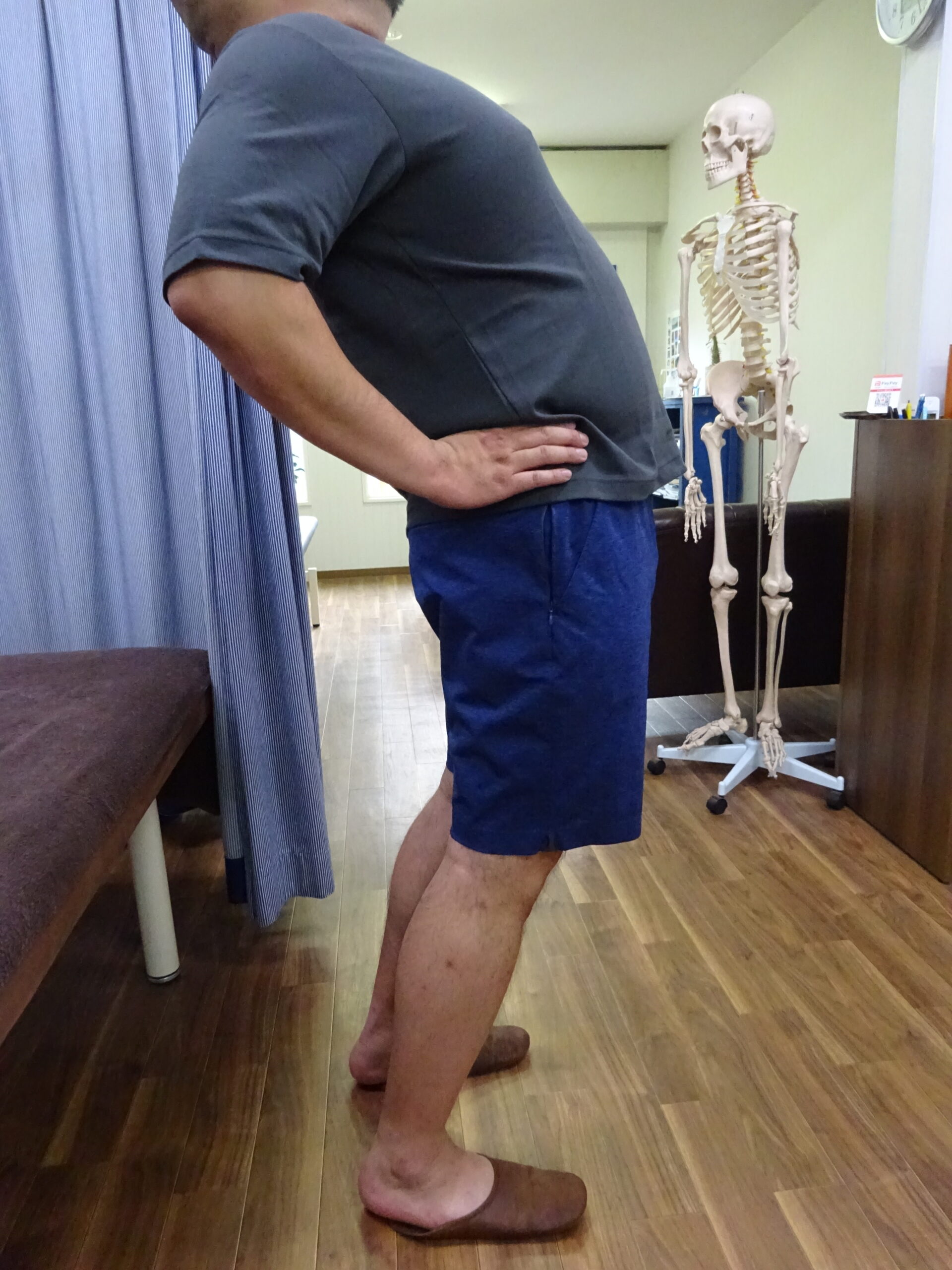 まずは症状を伺うと、普段から後輩の練習相手になっているためにそこまで体を痛めていないようですが、強いて言えば腰という事で可動域をチェック。