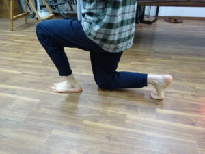 <治療前>左前のランジ姿勢で恥骨辺りが痛い
