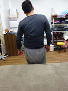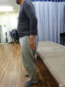 <治療前>真っ直ぐな姿勢で歩くと腰中央に痛みが奔りいつものように歩けない