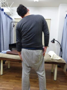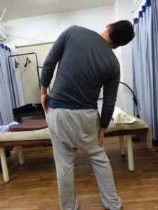 <治療前>前に倒すとこの位置で腰中央が痛い