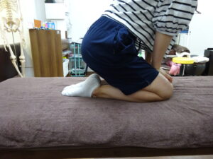 まずは症状を伺うと、7年前の登山中に転倒して右膝半月板を損傷したので内視鏡手術を受ける。それでも全快ではなく痛みが残るとのこと。続いて痛みの出る動作を確認