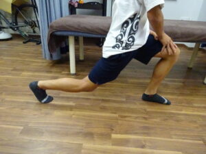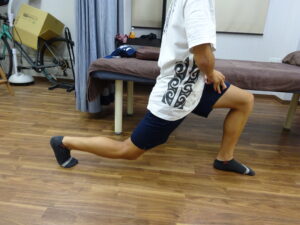 <治療前>ランジ姿勢は右の前太ももが痛いので脚ををこれ以上落とせない