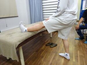 <治療前>ハムストリングスの伸ばそうとすると痛みでこれ以上伸ばせない