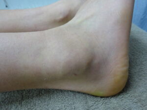 【足首捻挫|打撲|2週間前にサッカーをして右足首捻挫。治ってきた2日前に兄に患部を蹴られて再度痛みが出ている】