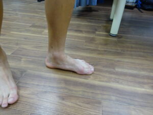 <治療前>体重を乗せると足首の中に痛みを感じる