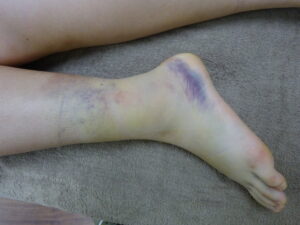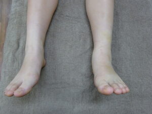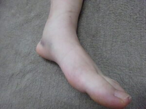 <治療前>左足首の内くるぶし辺りに目立つ腫れ