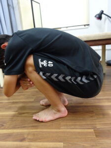 すでに当院の≪治療報告≫にご登場頂いているYくん。半年振りのご来院ですが今回の治療は3週間前の試合中の捻挫で痛めた左足首。ここ数カ月で捻挫を繰り返しているとのこと。早速痛みの出る動作を確認
