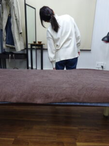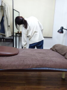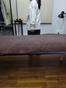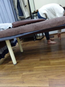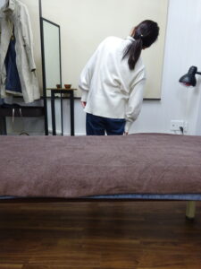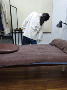 <治療前>前に倒すとこの位置で右腰から尻が痛い