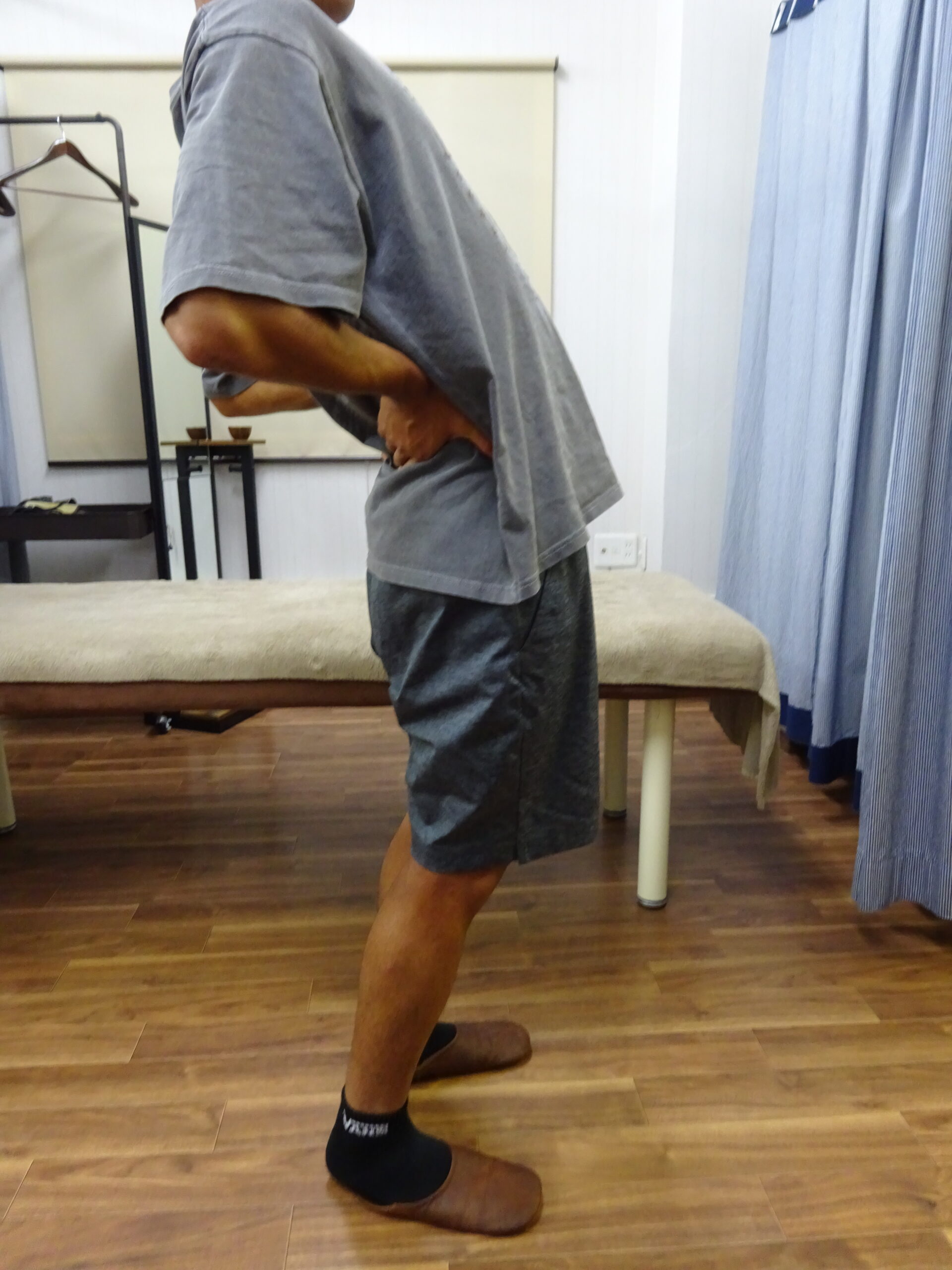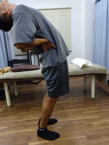 <治療前>後ろに倒すとこの位置で腰中央から左腰が痛い