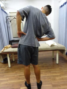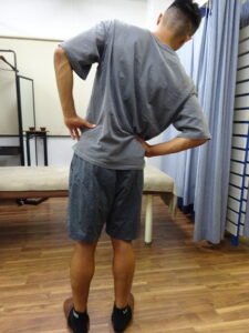 まずは症状を伺うと、高校時代に右腸骨剥離骨折をしてから度々腰が痛くなるとのこと。続いて痛みの出る動作を確認