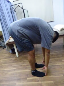 <治療前>前に倒すとこの位置で左腰が痛い