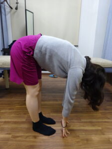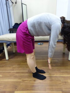 <治療前>前に倒すと、この位置で腰中央が痛い