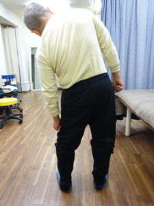 まずは症状を伺うと、1年前から寝起きに両尻が痛いとのこと。続いて痛みの出る動作を確認