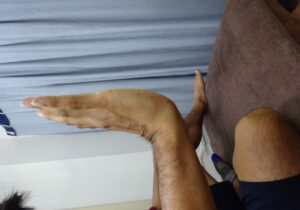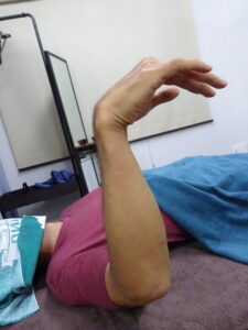<治療前>右手首を手の平側に曲げると手首の中が痛くてこれ以上曲げられない