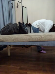 10日くらい前から仕事中に長く座っていると腰が痛くなり接骨院に何回か通うも良くならないので、他の医療機関を探していると当院のHPを見つけてご来院頂きました。他にも痛みの出る動作があるかを確認