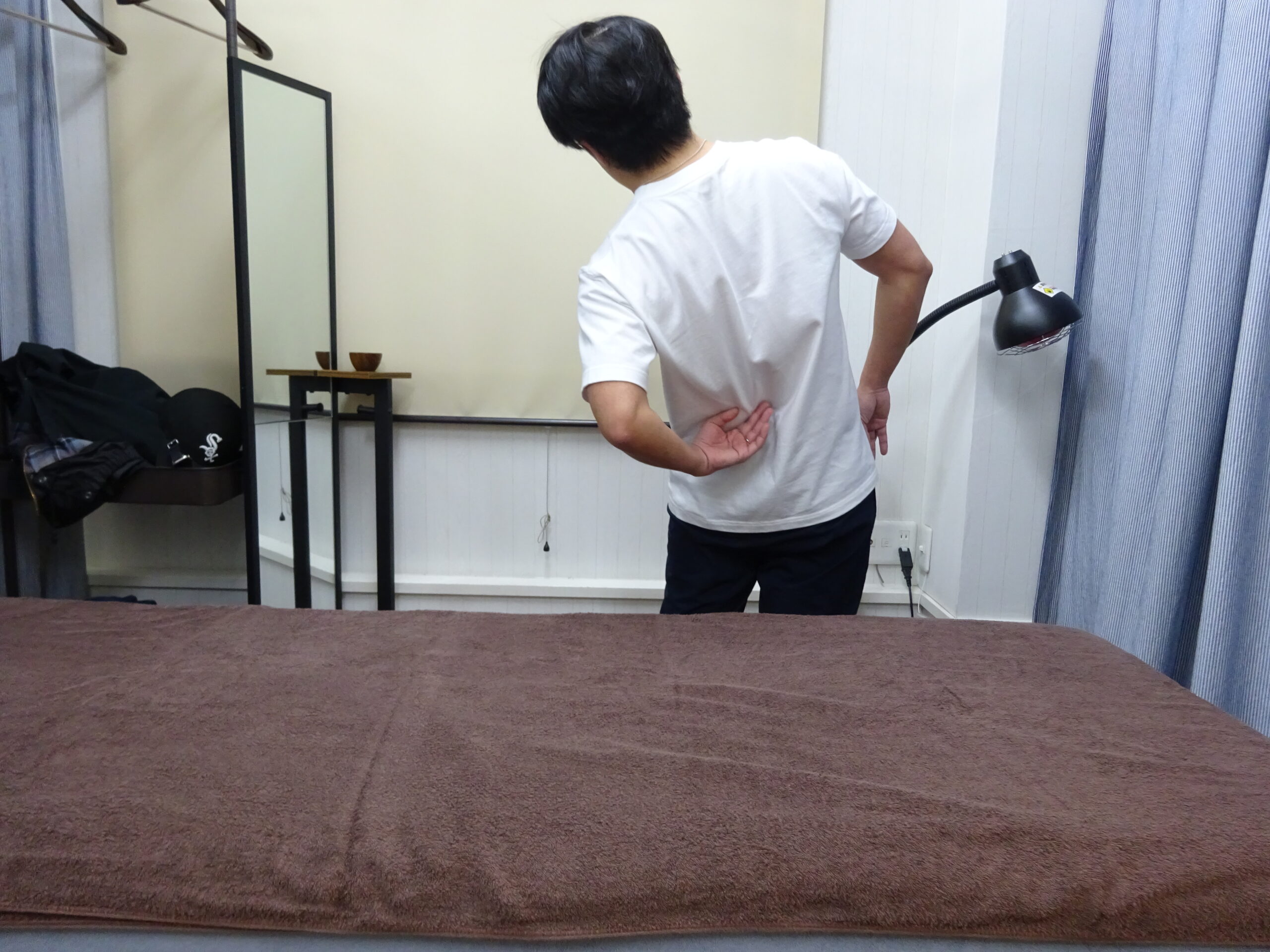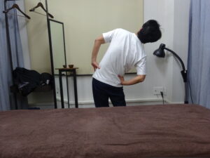 <治療前>左斜め後ろに反ると、この位置で左腰から中央にかけて痛い