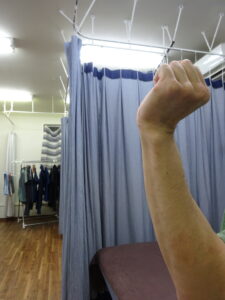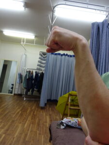 手首の治療で検索して当院のHPを見つけお越し頂きました。まずは症状を伺うと、2年前に動かすと痛かった左手首が2カ月前のドラム練習で再発したとのこと。続いて痛みの出る動作を確認