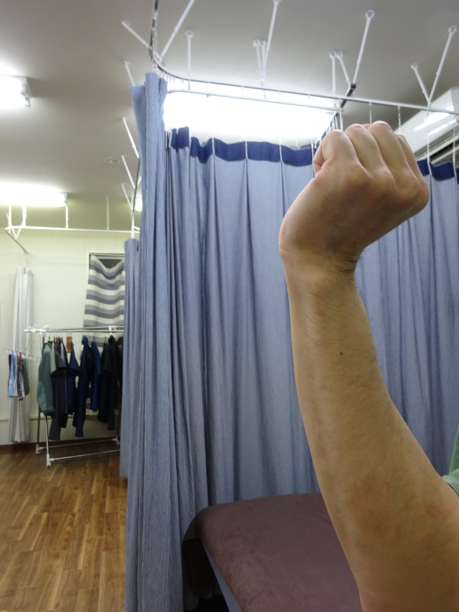 Sさん「お、曲げやすいですね。今は治療の重だるさがあるだけで痛くないです」