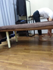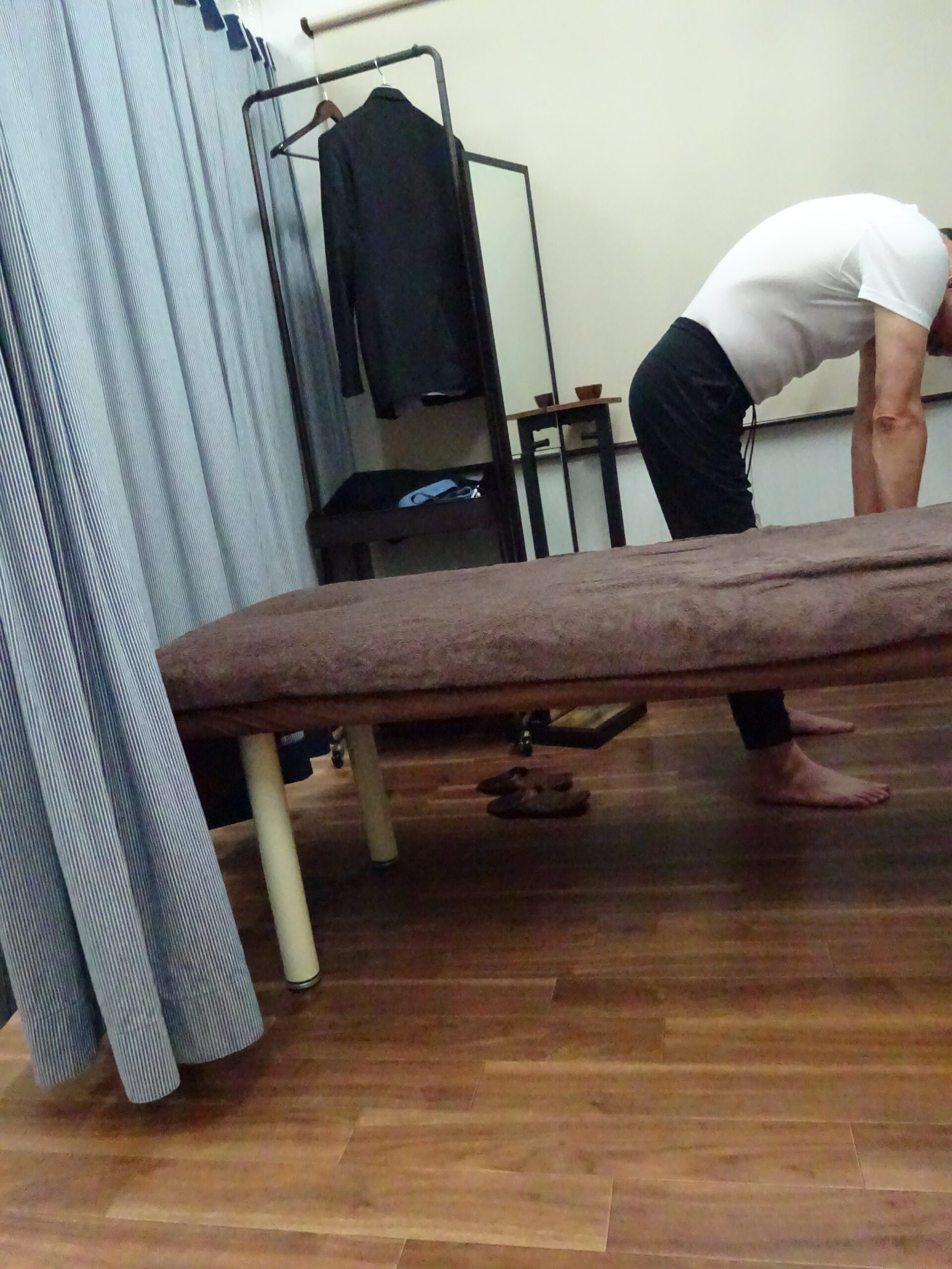 <治療前>前に倒すと痛みは無いが硬くてこれ以上倒せない