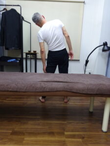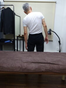 まずは症状を伺うと、2日前の仕事中に腰が痛くなったとのこと。他の医療機関でハイボルテージを受けたが痛みは取り切れなかったとのこと。続いて痛みの出る動作を確認