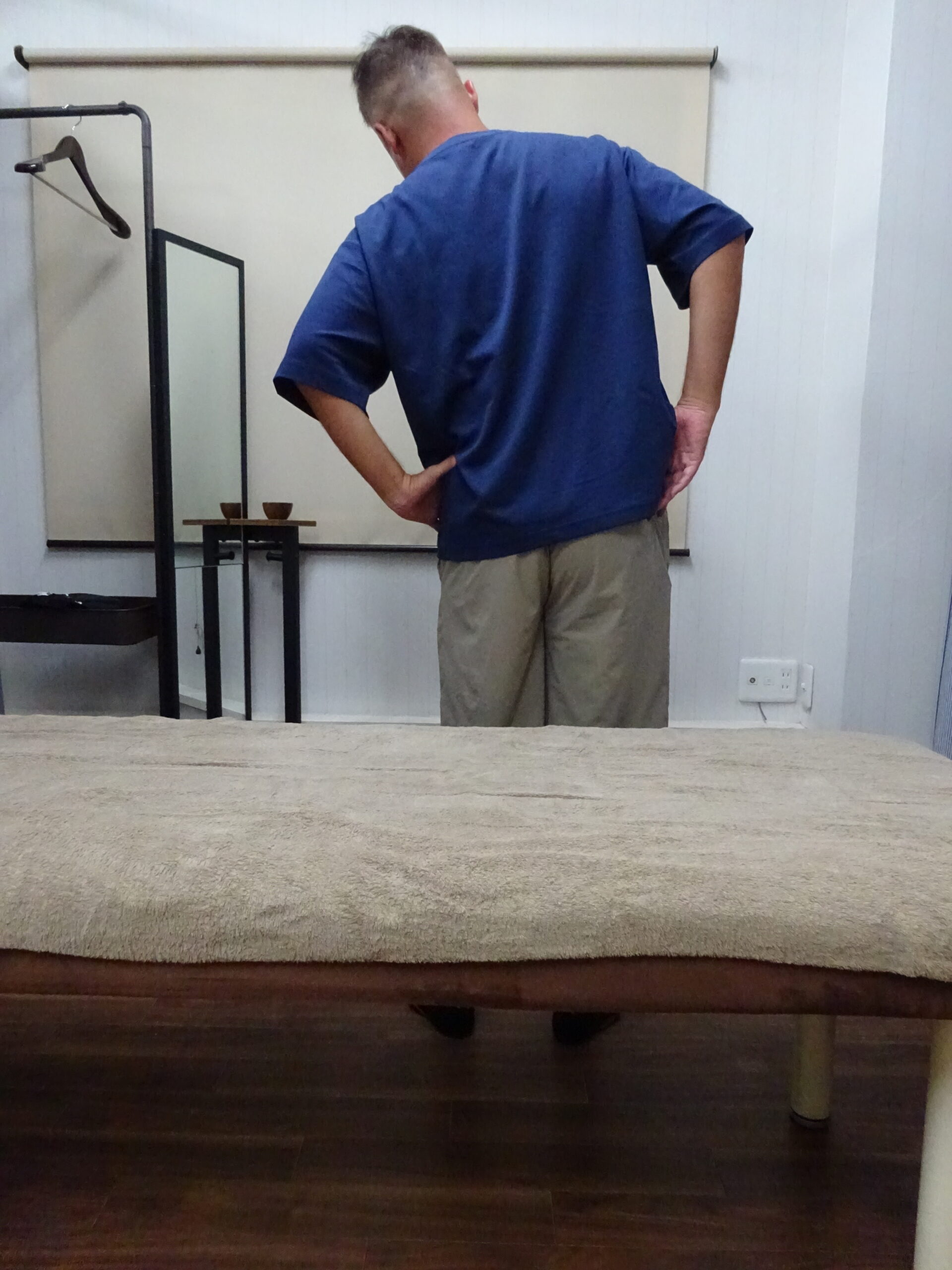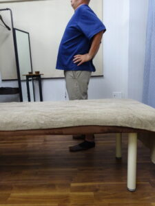 <治療前>後ろに反ると、この位置で腰中央が痛くてこれ以上反れない